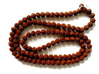 Rudraksha Mala has been used by Hindus (as well as Sikhs and Buddhists) as rosary at least from the 10th century onwards for meditation purposes and to sanctify the mind, body and soul. The word Rudraksha is derived from Rudra (Shiva - the Hindu God of all living creatures) and aksha (eyes). One Hindu legend says that once Lord Shiva opened His eyes after a long period yogic meditation, because of extreme fulfillment He shed out a tear. This single tear from Shiva’s eye grew into the Rudraksha tree. Rudraksha fruit is blue in color but turns black when dried. The central hard Rudraksha uni-seed has 1 to 108 faces and 2 to 21 faces Rudraksha are available, 1 faced Rudraksha is scarcely available, Rudraksha having 22 to 108 are almost extinct, there are claims that 22 to 108 faced Rudraksha plants still survive at the foot hills of the Himalayas and Mansarovar regions, but man is yet to see them.
