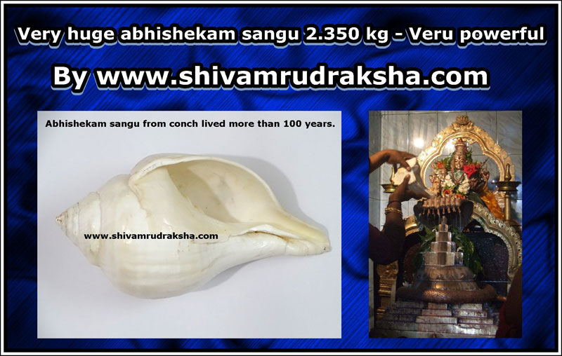 Abishekam sangu from sea conch lived more than 100 years - This is very huge abishekam sangu weight 2.350 kg. While blowing this sangu produces very high volume of sound. By keeping this abishekam sangu in your pooja room gives very good vibration and makes our house to flow of high level of positive energy. This sangu has lives more than 100 years. Sangu also blown in temples while doing pujas. It is very very powerful doing abishekam with this sangu to your favourite gods.