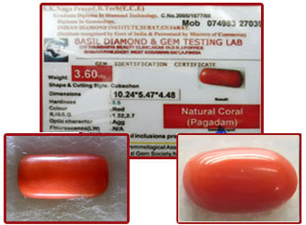 Red Coral carat Rs. 700 to 1500 - US$ (16 to 34)