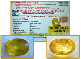 Yellow Saphire carat Rs. 2200 to 6000 - US$ (50 to 134)