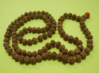 Rudraksha Mala has been used by Hindus (as well as Sikhs and Buddhists) as rosary at least from the 10th century onwards for meditation purposes and to sanctify the mind, body and soul. The word Rudraksha is derived from Rudra (Shiva - the Hindu God of all living creatures) and aksha (eyes). One Hindu legend says that once Lord Shiva opened His eyes after a long period yogic meditation, because of extreme fulfillment He shed out a tear. This single tear from Shiva’s eye grew into the Rudraksha tree. Rudraksha fruit is blue in color but turns black when dried. The central hard Rudraksha uni-seed has 1 to 108 faces and 2 to 21 faces Rudraksha are available, 1 faced Rudraksha is scarcely available, Rudraksha having 22 to 108 are almost extinct, there are claims that 22 to 108 faced Rudraksha plants still survive at the foot hills of the Himalayas and Mansarovar regions, but man is yet to see them.