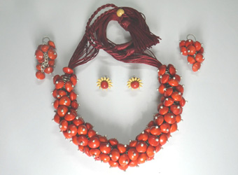 Pure Red Chirmi Beads Necklesswith Two set of Ear rings Rs. 5500 - US$ 110