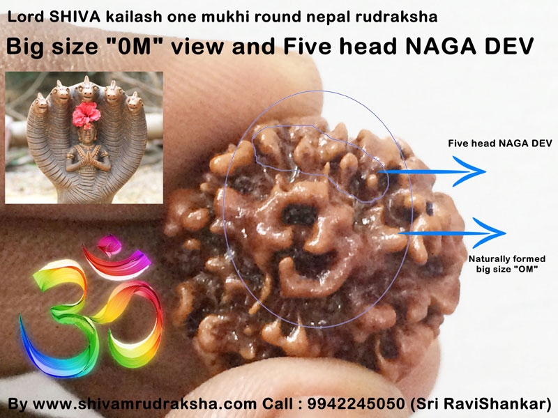 Extremely unique collection same another piece impossible. This miracle rudraksha has full and full blessing of Lord SHIVA we can not explain the beauty and power of this rudraksha in words. This rudraksha has beautifully and naturally formed "OM" mark protected by 5 head naga dev and another separate "OM" mark and naturally wonderfully formed golden view ofkailash mountain with Lord SHIVA trisule and cresent moon. Other extremely powerful Lord SHIVA symbol third eye of Lord SHIVA and star which represents blessing of angles.