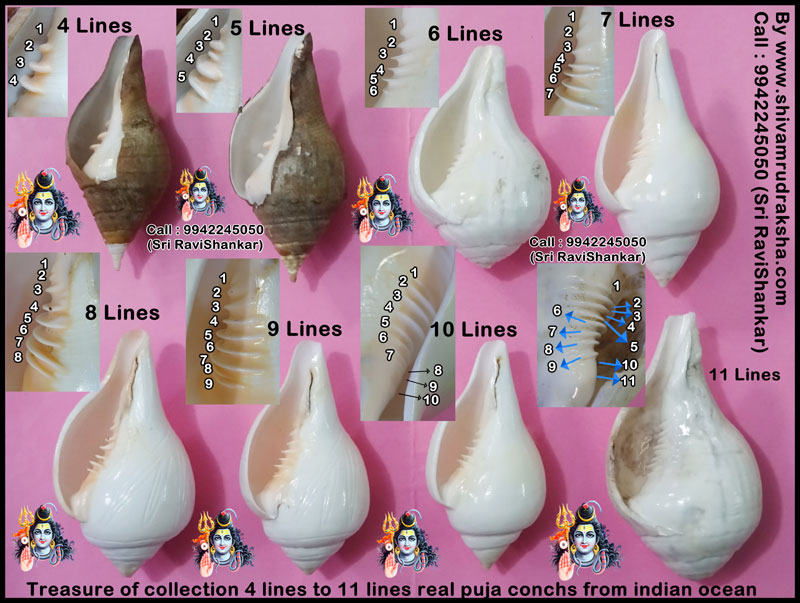Treasure of collection 4 linesto 11 lines Real Puja Conchsfrom Indian Ocean Ask for Quote