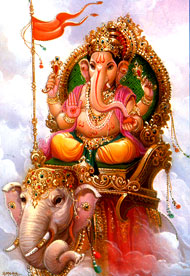 Ganesh represents water (Apas), the energy of fulfilment; he is the Master of Varuna, god of waters. This is why, when the Ganesha Chathurti festival ends, clay statues of god Ganesh must be brought to the sea and immersed to be dissolved.